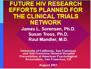 In addition to the studies underway, CTN participants are planning multi-site clinical trials with emerging results that address HIV/AIDS. The CTN has a HIV/AIDS Special Interest Group (SIG) that meets regularly to discuss study ideas and policy approaches. The SIG provides a supportive place to discuss HIV research related to the CTN, share information with each other about opportunities and developments, promote AIDS ideas and research in the CTN, and link CTN research with the AIDS Research Office of NIDA. The SIG periodically reviews and prioritizes study ideas before they work their way up the organizational hierarchy, and, in the latest CTN Call for Concepts, had developed approximately ten suggestions for HIV-related research studies.