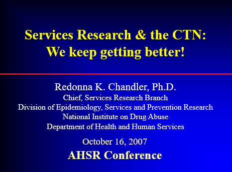 The CTN provides a rich lab for services research and NIDA is very interested in maximizing the use of this resource. By working collaboratively, health sciences and CTN researchers can continue moving forward and improving the process.