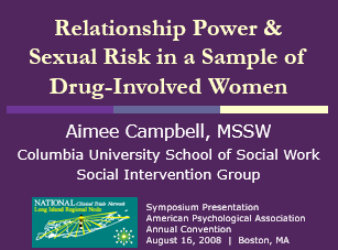 ‘s ability to practice safer sexual behavior is influenced by contextual and relational factors, including power dynamics between her and her male partner. Little research, however, has empirically examined relationship power in the context of drug-involved women. Using baseline data collected from a national multi-site trial of an HIV intervention for women in community-based substance abuse treatment program through the National Institute on Drug Abuse Clinical Trials Network (protocol CTN-0019), we examine the association between sexual relationship power and unprotected sexual occasions. The Sexual Relationship Power Scale (SRPS) includes two subscales representing two domains of power, decision-making dominance and relationship control, and was used to assess the impact of power on unprotected sexual occasions for women with male partners.