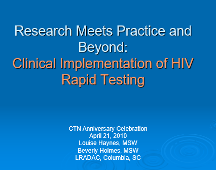 Community health services, CTN 10-year anniversary, CTN protocol development, HIV rapid testing, HIV/AIDS, Research design, Sexually transmitted diseases
