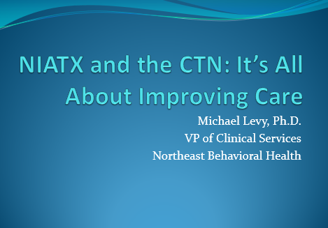 Northeast Behavioral Health (formerly CAB Health and Recovery Services), part of the New England Consortium Node, was one of the original members of Paths to Recovery, an initiative that eventually became NIATx (Network for the Improvement of Addiction Treatment). After learning about the quality of care enhancements brought about by rapid-cycle PDSA (Plan-Do-Study-Act) projects, the organization began focusing first on decreasing the time from first call to first dose of methadone in their methadone treatment program, and then rapidly expanded rapid-cycle enhancements to other levels of care. It was suggested not to train staff in evidence-based practices, but instead to have the freedom to try anything that could work. The CTN, on the other hand, uses a completely different philosophy when it comes to enhancing substance use disorder treatment quality. It relies on carefully designed research using randomized controlled trials to determine if one type of treatment is better than another, or better than treatment-as-usual. The CTN also focuses on training and supervision, as well as monitoring the fidelity of implementation of evidence-based practices. Exposure to the CTN brought an enriching network of researchers and information back to Northeast Behavioral Health, as well as a host of new evidence-based practices. Exposure also went in the opposite direction, with researchers getting a better handle on the various issues treatment programs struggle with. Though NIATx and the CTN have vastly different approaches to enhancing the quality of substance use disorder care, both have something of value to offer and both should be used to enhance care, either separately, together, or in a blended format. Involvement in both NIATx and the CTN has enhanced the delivery of substance use disorder treatment within Northeast Behavioral Health.