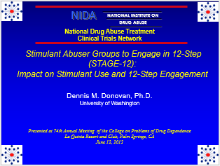 Stimulant Abuser Groups to Engage in 12-Step (STAGE-12): Impact on stimulant use and 12-step engagement.