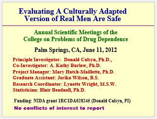 The presentation reports on a study designed to revise the CDC recognized, evidence-based HIV prevention intervention, “Real Men Are Safe” (REMAS) to be more culturally relevant to African American and Hispanic men, and then conduct a pilot feasibility trial of the revised REMAS (REMAS-CA) in four CTN community treatment providers that have a high percentage of minority clients. Comparisons between the original REMAS manual and four culturally tailored interventions (Nia, d-up, Many Men Many Voice, and Cuidate) were made, focusing in particular on language/expressions of the target group; activities that enhance ethnic identity, consistency with the norms, knowledge, and cultural values of the target group; and understanding of the social context and living situations of the target group. Resultant changes to the original intervention are described, along with data and feedback from focus groups following pilot testing of the REMAS-CA.